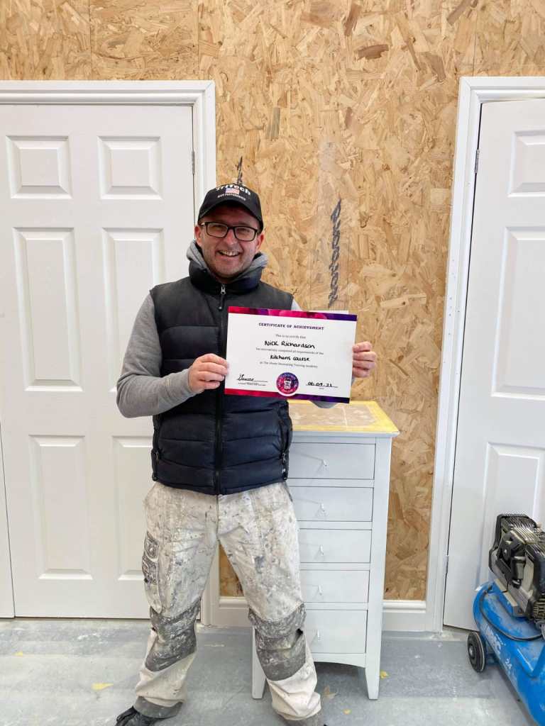 Newton Decorators are proudly certified for UPVC and kitchen spraying by The Abode Decorating Training Academy.